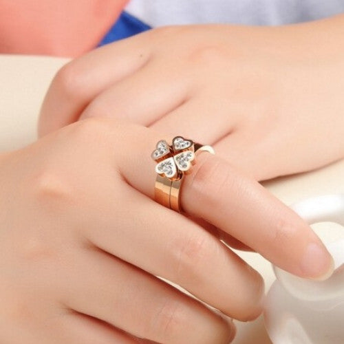 Heart Rings Crystal Flower Rings